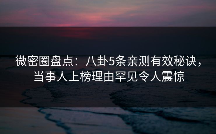 微密圈盘点:八卦5条亲测有效秘诀,当事人上榜理由罕见令人震惊原标题:微密圈盘点:八卦5条亲测有效秘诀,当事人上榜理由罕见令人震惊